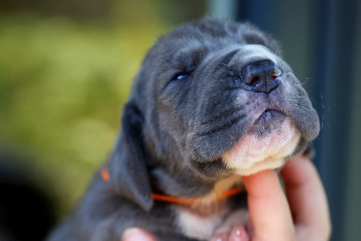 Cette jolie femelle au collier orange charme déjà par son minois attendrissant et ses babines toutes rondes. Toujours prête à se lover dans la main, elle aime le contact et profite de chaque caresse comme d’un trésor. Son pelage bleu aux reflets soyeux met en valeur son air tranquille et câlin, presque rêveur…